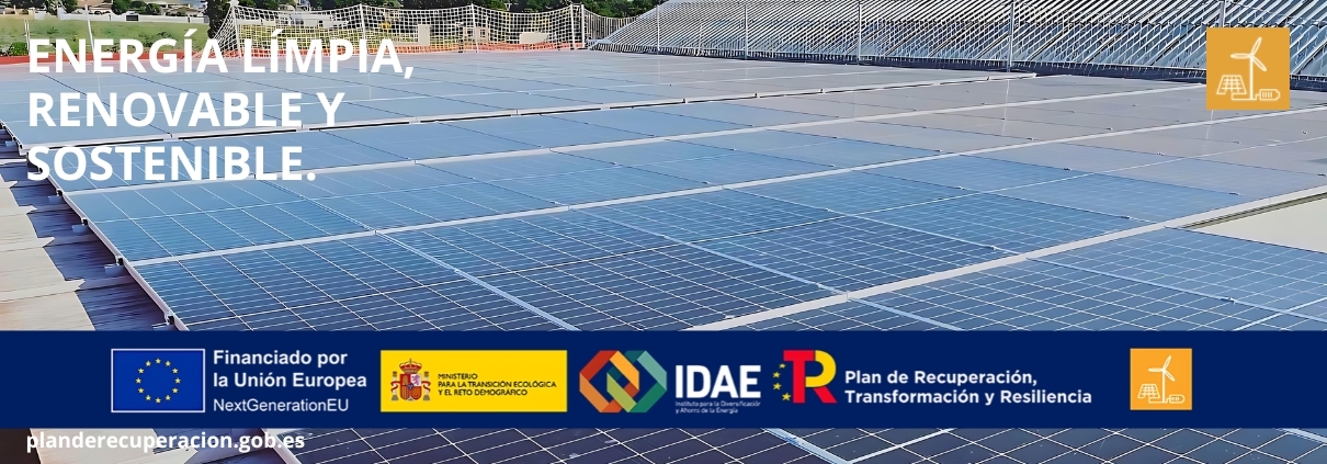 Proyecto acogido al programa de incentivos ligados al autoconsumo y almacenamiento, con fuentes de energía renovable, así como a la implantación de sistemas térmicos renovables en el sector residencial en el marco del Plan de Recuperación, Transformación y Resiliencia, financiado por la Unión Europea – NextGenerationEU. ( Real Decreto 477/2021 )